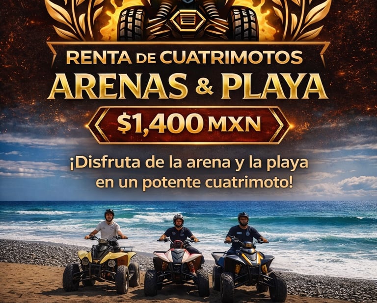 Vive la adrenalina al máximo recorriendo dunas y playa en cuatrimoto. Libertad, potencia y aventura en un solo recorrido. Ideal para amigos, pareja o familia.